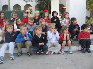 And here are the STARS of the presentation...and some of the sweetest kiddos around! They are eagerly waiting to start in this first photo. It got pretty chilly out there all of the sudden...so I'm surprised they aren't huddled a LITTLE CLOSER!